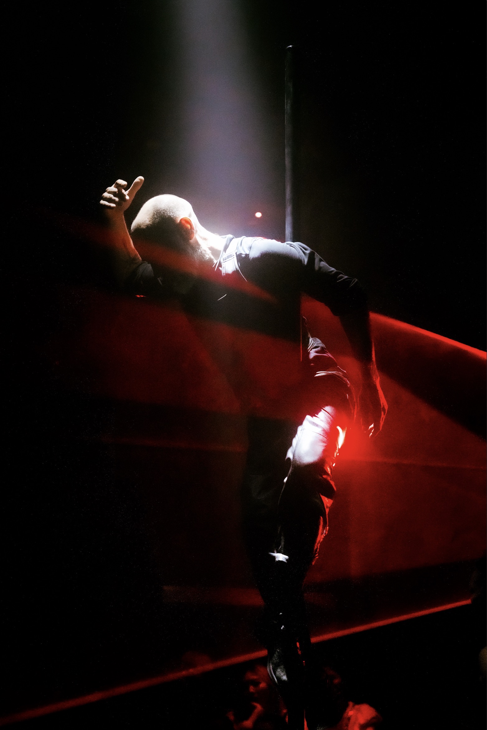Proche du mouvement des derviches tourneurs et s’appuyant sur la pratique du pole dance, la physicalité extrême de cette performance renouvelle l’esthétique propre à cette discipline.